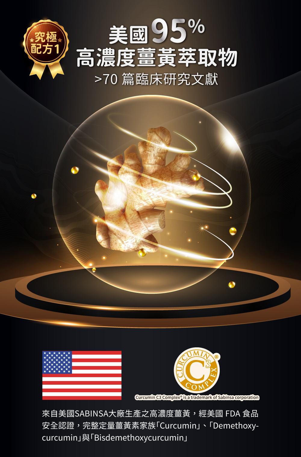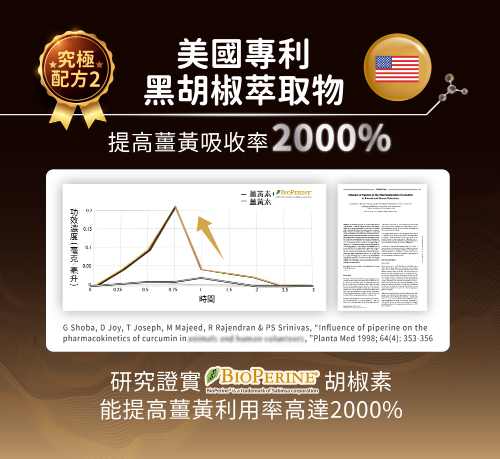 ⭐美國專利黑胡椒萃取物,提高薑黃吸收率200%!