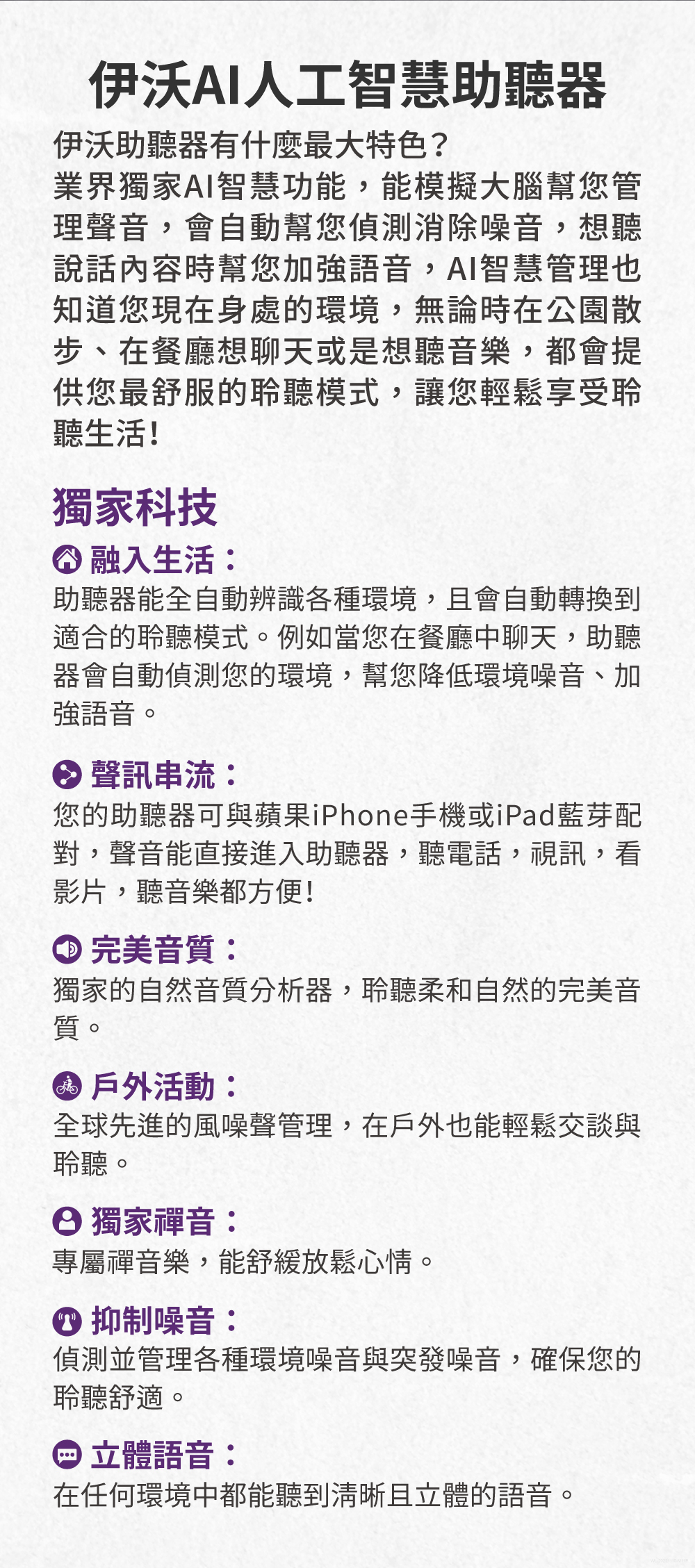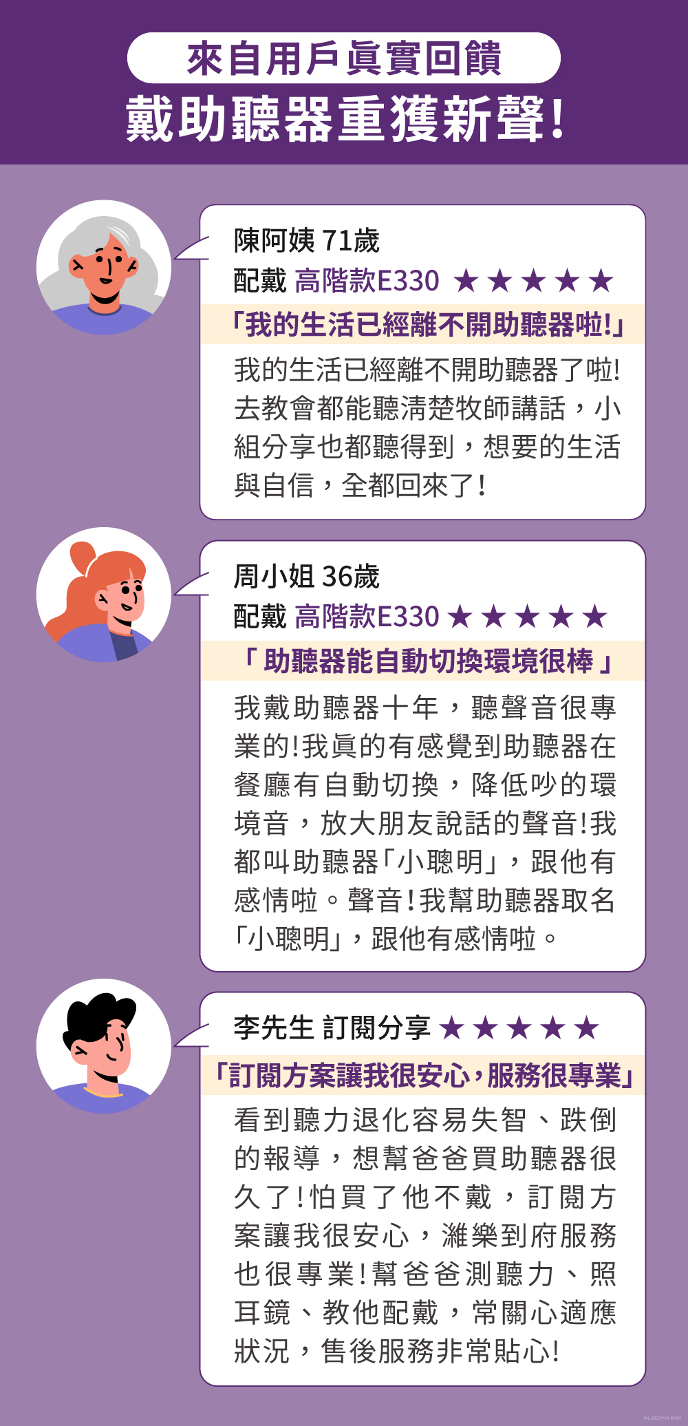 濰樂擁有多年助聽器服務經驗,我們時常遇到客戶考量價格、擔心買了不適應等原因,不願嘗試而延誤了配戴黃金時機!也減少社交、與家人聊天的機會,亦或購買較低價無降噪與保護聽力功能的擴音器,最後還是不舒服而不配戴,這都是非常可惜的!同時也增加了失智與跌倒等生活風險。因此,我們推出了超安心優質的訂閱方案,讓客戶能輕鬆享有高科技助聽器,讓聽清楚的生活更精采美好!