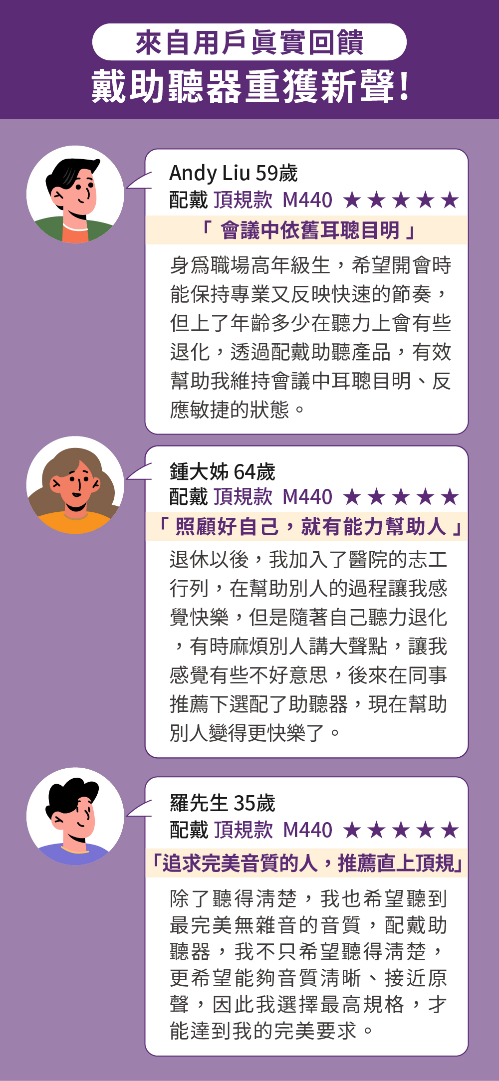 濰樂擁有多年助聽器服務經驗,我們時常遇到客戶考量價格、擔心買了不適應等原因,不願嘗試而延誤了配戴黃金時機!也減少社交、與家人聊天的機會,亦或購買較低價無降噪與保護聽力功能的擴音器,最後還是不舒服而不配戴,這都是非常可惜的!同時也增加了失智與跌倒等生活風險。因此,我們推出了超安心優質的訂閱方案,讓客戶能輕鬆享有高科技助聽器,讓聽清楚的生活更精采美好!